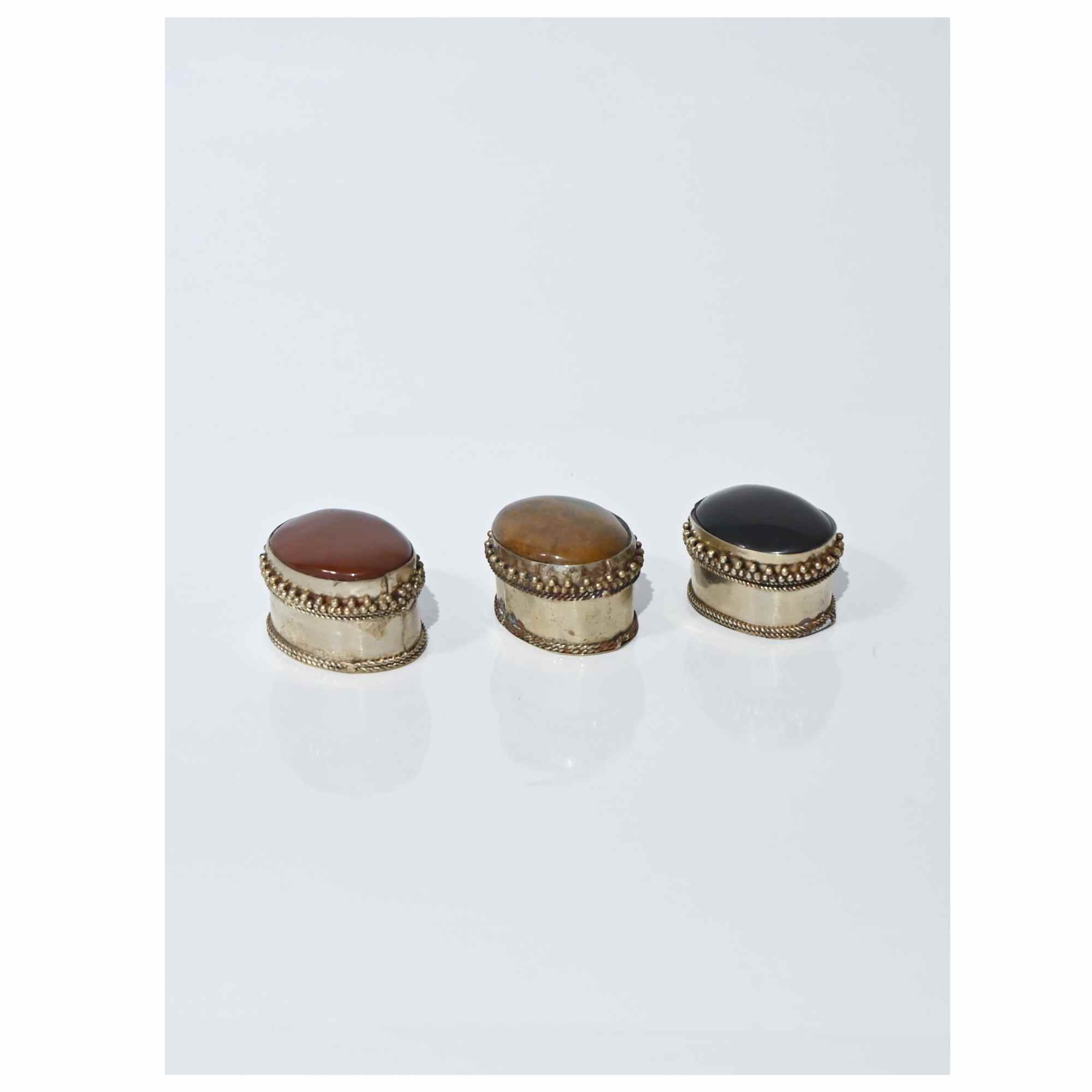 Kleine Schmuckdose aus Silber, oval mit farbigem Stein im Deckel.